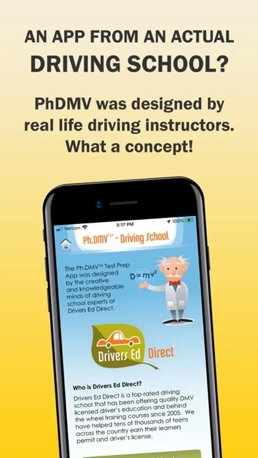 Learn from the best! The Ph.DMV Test Prep app is designed by Drivers Ed Direct, the top provider of driver’s education and drivers training in California. Drivers Ed Direct’s driving school experts have trained over 200,000 teens and Drivers Ed Direct is the preferred choice for many California high schools and high profile clients. Drivers Ed Direct has been featured on several late-night shows, network talk shows, and news programs nationwide.