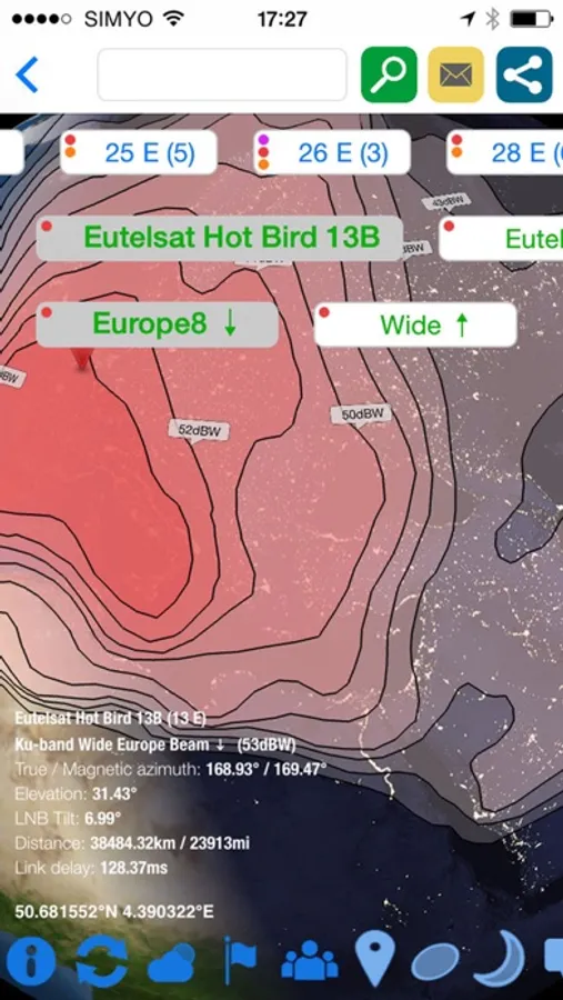 Worlds best satellite footprints browser, dish alignment calculator and AR Sat Finder combined in one tool for your tablet or smartphone!