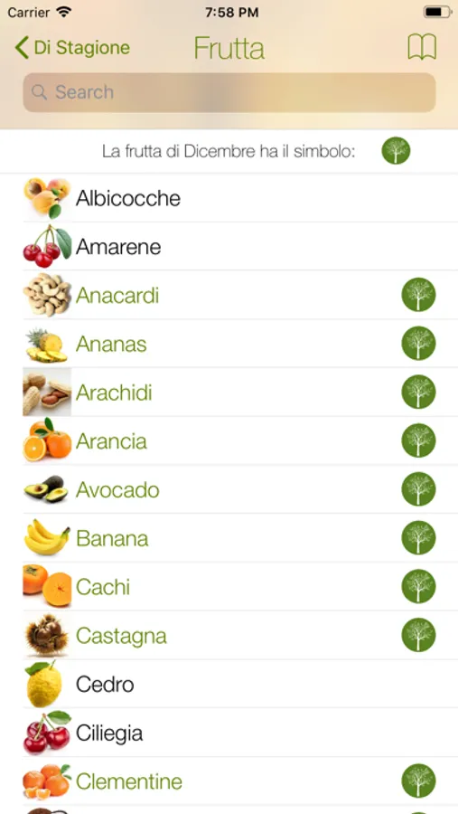 Potrai selezionare il mese che preferisci per visualizzare l’elenco completo degli alimenti del mese, oppure solamente la Frutta, la Verdura o il Pesce del singolo mese. - Con acquisto di “Funzionalità Aggiuntive” o "Illimitato"
