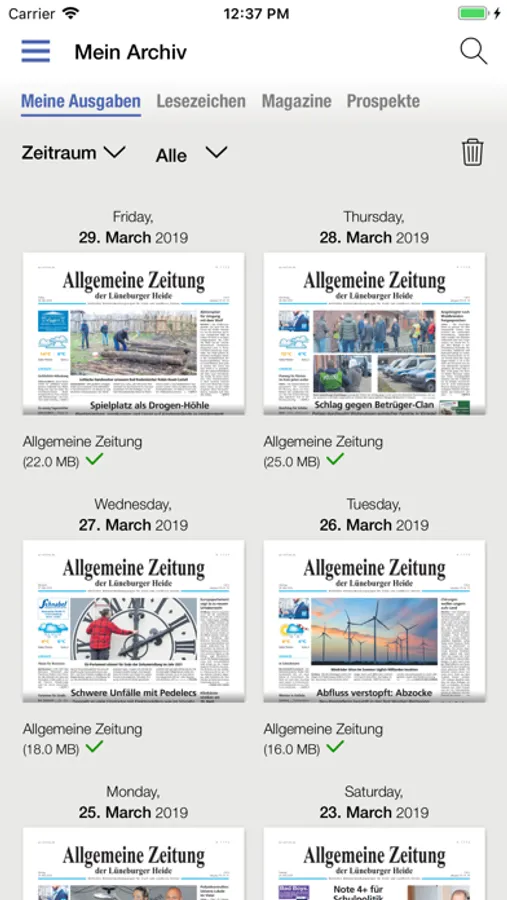 Es werden Ihnen nach dem Login sämtliche abonnierte Ausgaben angezeigt.