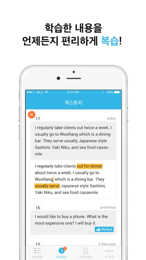 학습내역을 통해 학습자가 공부한 내용을 언제든지 확인하고, 복습해 볼 수 있습니다.