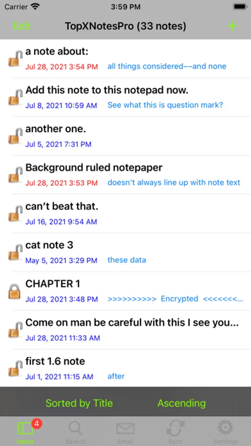 TopXNotes Pro is the third leg of our "freemium tripod" for iOS (iPhone, iPad and iPod touch, with NoteZoom, and WiFi NoteSync to TopXNotes for Mac. TopXNotes Pro features note sharing, Air Print directly from the iOS device and note encryption.