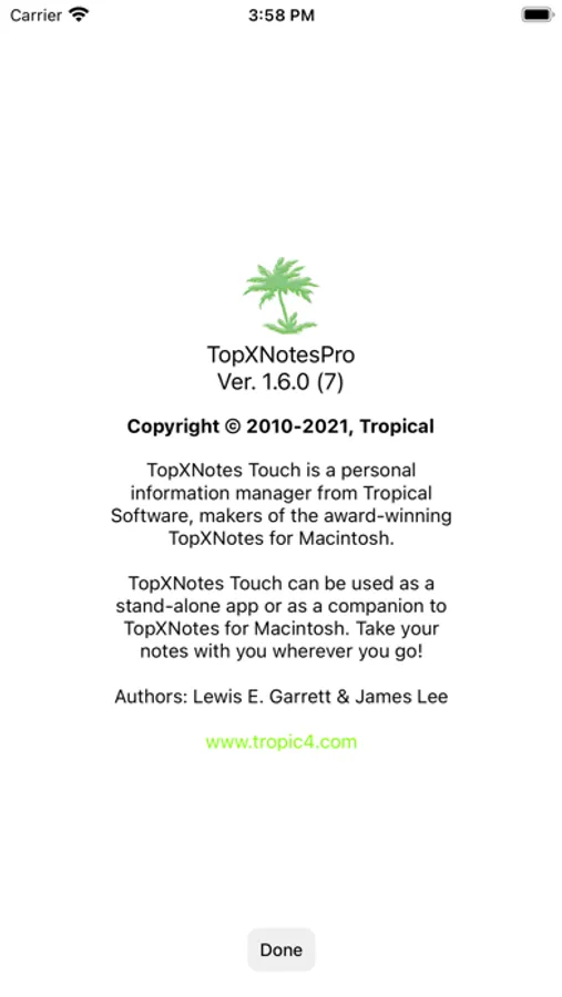 Also works with "cloud free" NoteSync built into TopXNotes Mac. Using our companion product, TopXNotes Mac, you can sync to multiple Apple touch devices from one Mac. TopXNotes Mac' NoteSync presently supports iPhone, iPod touch and iPad. You must have a WiFi network to use sync. Go to www.tropic4.com for more on TopXNotes Mac.