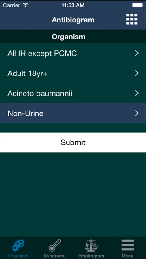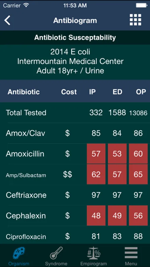 Provides Intermountain Physicians and clinicians with relevant information to their scope of practice (e.g., inpatient, outpatient, emergency department, adults vs. children). This app consists of two parts, Antibiograms and Surveillance.