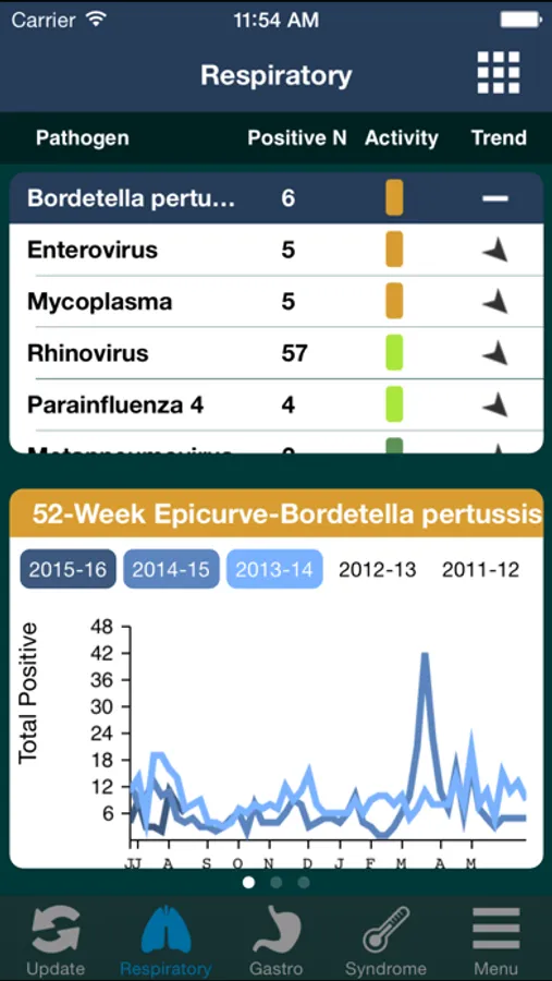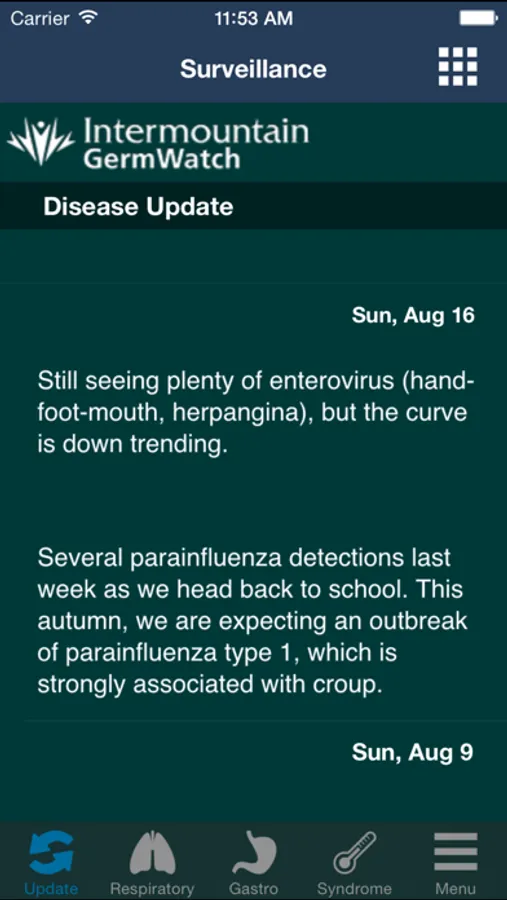 Respiratory and gastrointestinal surveillance is based upon laboratory-confirmed cases detected in the hospitals and clinics throughout the Intermountain system.