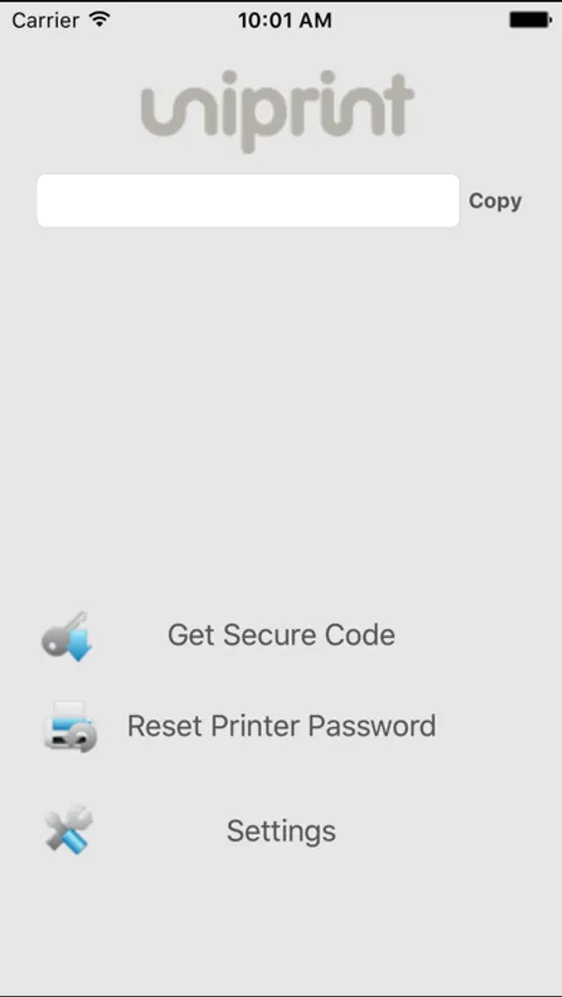 Get secure code for UniPrint Secure Print to print wirelessly to VPQ.
