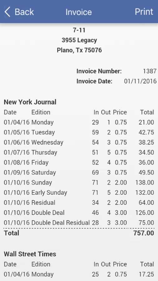 Additionally, Route Trax lets you manage delivery of up to ten publications & unlimited locations. Manage all your Daily and Sunday delivery schedules, and track your weekly or monthly history right on the delivery screen. Route Trax’s smart delivery allocation system looks at last week’s sales to determine this week’s deliveries.