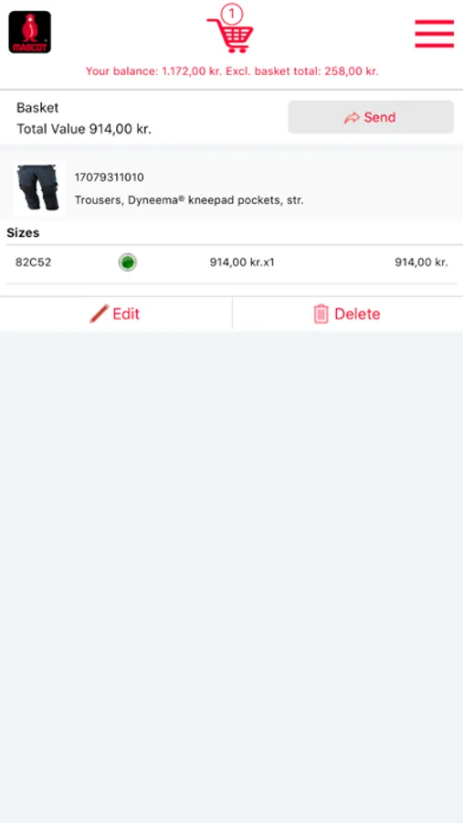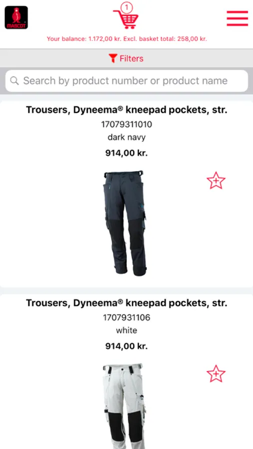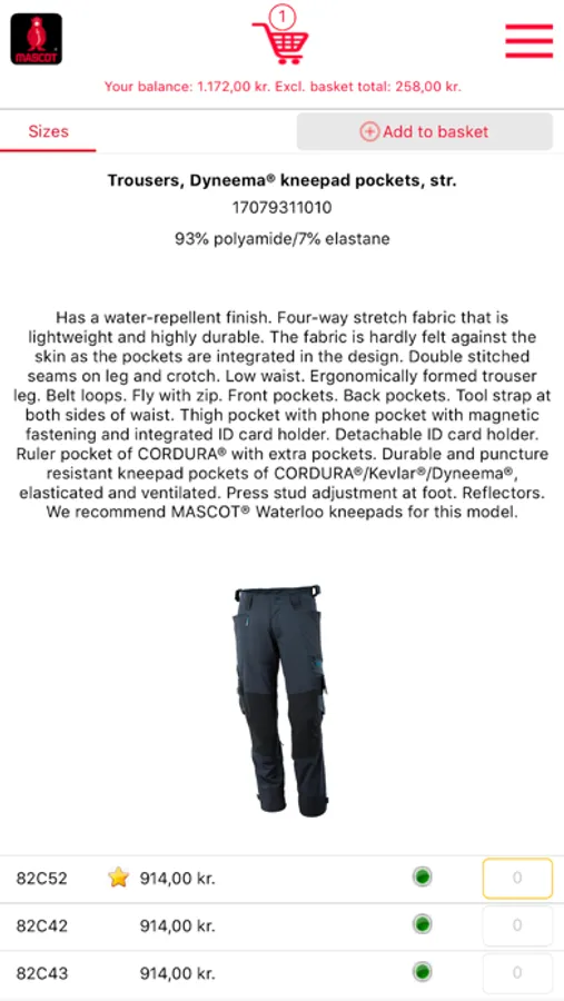 It is then possible for the employee to log in to the account using the app to order workwear appointed to him/her by the company. In addition to workwear, the employee can order a number of extra services such as application of company logos and/or employee name, application of reflective strips, shortening of trousers and other services predefined by the company.
