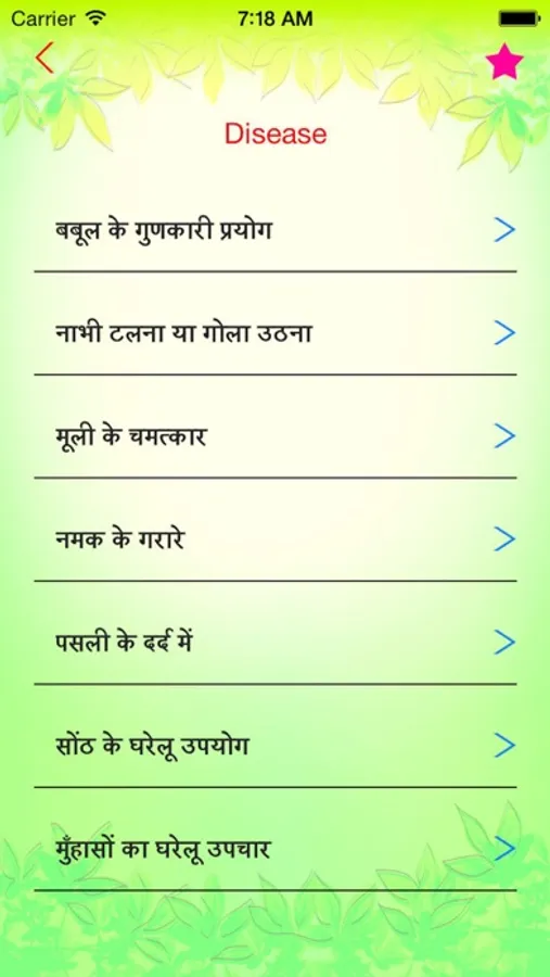 This app contains all disease category in hindi language and also their “Ayurvedic cure” description in hindi language.