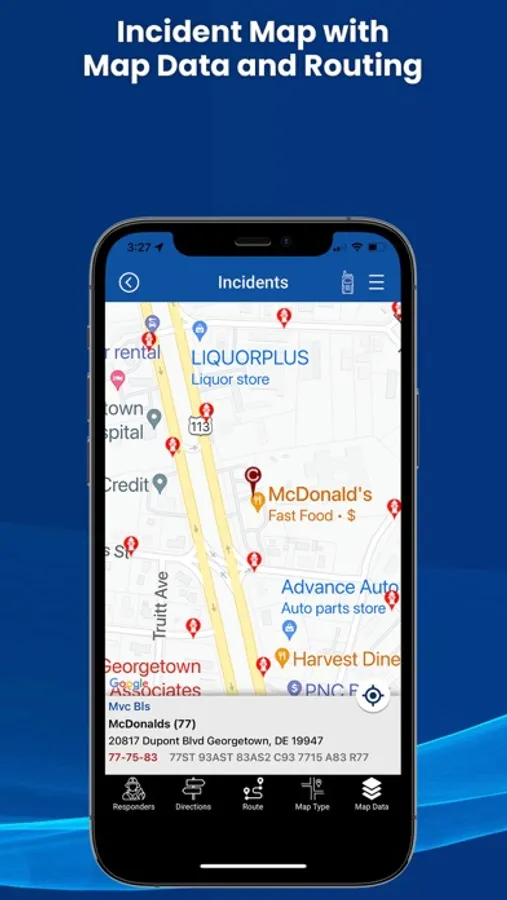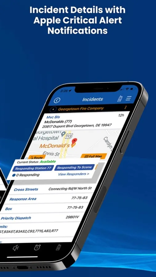 Allows you to receive & map incidents from your 911 dispatch center quickly. A push notification will alert you when a new dispatch occurs and forward you to the incident information and map.