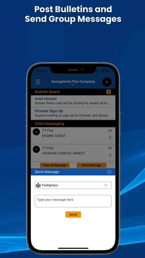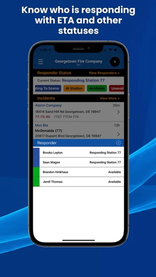 Allows your personnel to update their status (i.e. Responding Station 1, Available, etc.). Their ETA is tracked while responding.