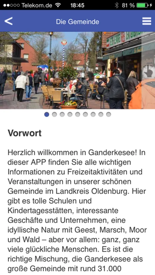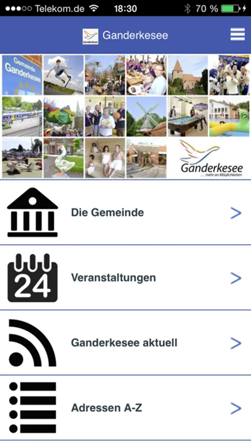 Sie finden wertvolle Informationen sowie tagesaktuelle Hinweise zu Veranstaltungen und Sie empfangen die neuesten Nachrichten der Gemeinde Ganderkesee. Mithilfe des praktischen Schadensmelders können Sie der Gemeindeverwaltung sofort Hinweise auf Straßenschäden, defekte Straßenbeleuchtung u. v. m. mitteilen.