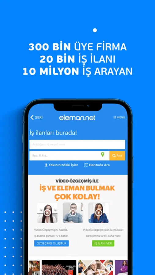 İş arayanlar ve eleman arayanları bir araya getiren eleman.net uygulaması ile kariyer hedefine uygun yeni bir işin olsun veya iş ilanı ver, aradığın elemanı hemen bul. Hemen özgeçmiş oluştur, cv oluştur veya iş ilanı ver!