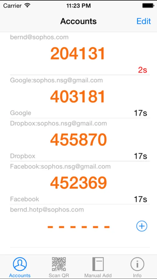 Once configured, 2-step authentication protects your account by requiring both your password and an additional code, thus adding an extra layer of security. The app will generate these codes for you in a convenient way, directly on your smartphone or tablet, without the need for Internet connection. Sophos Authenticator does not only operate with a Sophos account, but also with accounts from Google, Facebook, Dropbox, Github and all the other providers who implement authentication in this standardised way.