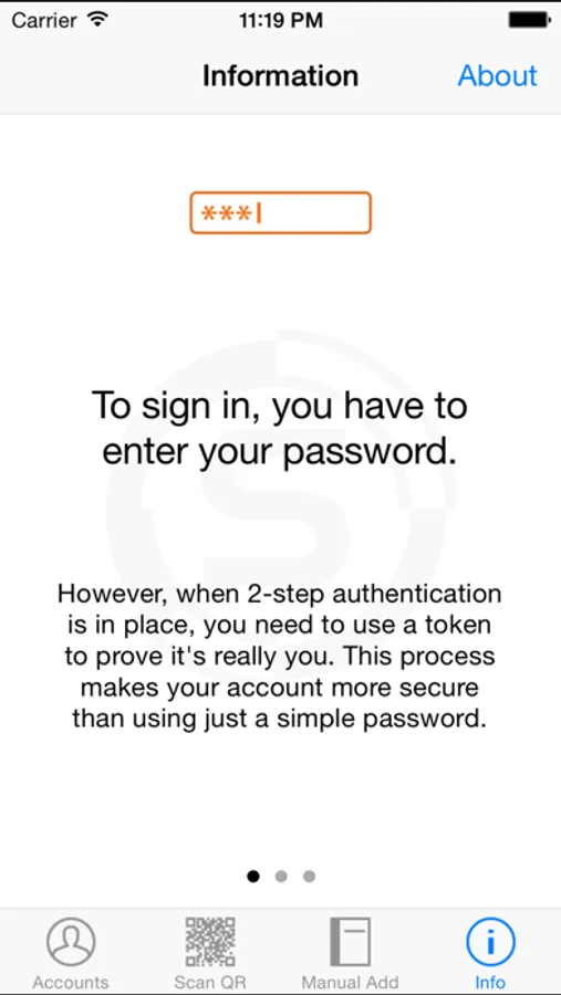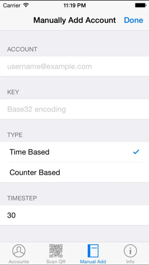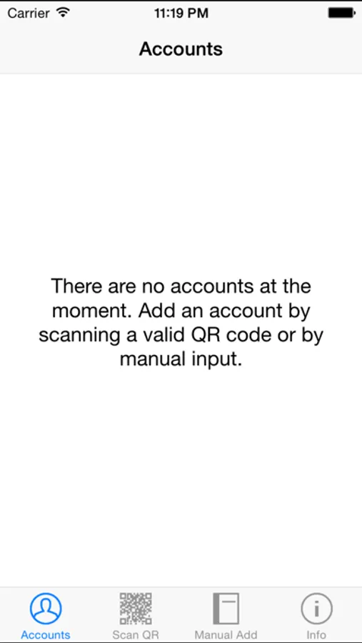 - Add an account easily by simply scanning a QR code with your device camera or by manual input