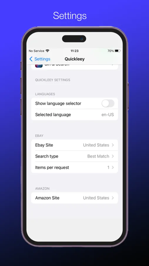 Use the settings to choose the Ebay marketplace site. Supported sites: Ebay USA, Germany, Italy, Australia and many others. Use the settings to choose the search type. Two possible search types available: Best Match and Lowest Price. Use the settings to chose the number of items to display per Ebay search request.