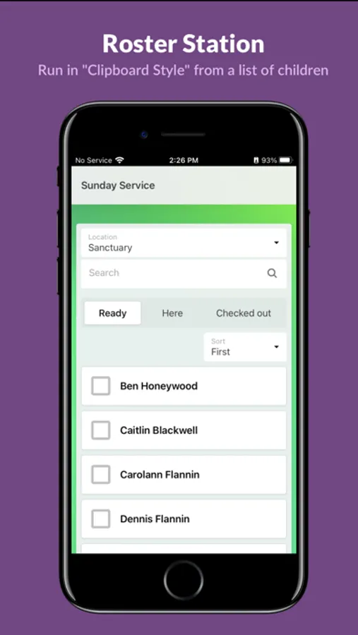 Check-Ins is an application designed to help you safely and quickly check kids or volunteers into classrooms and track attendance for any event.