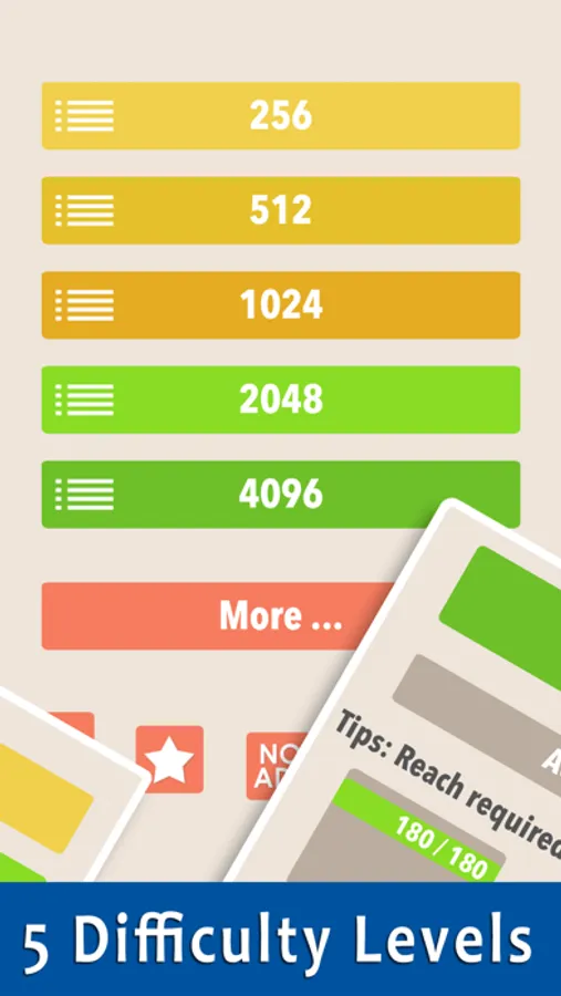 - 5 difficulties are available: 256, 512, 1024, 2048, 4096
