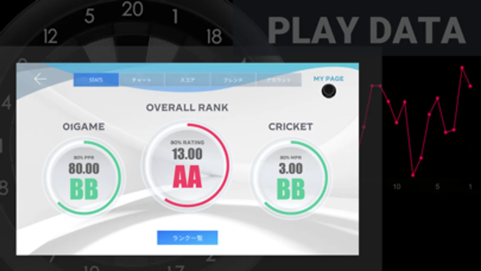 Game data are automatically saved on the server. You can manage game stats, highest scores/averages, and save awards on the server, and graph charts make all that easy to understand. Player data, total 5 players, can be managed all separately. When ranking up, the emblem of the top screen will be changes.