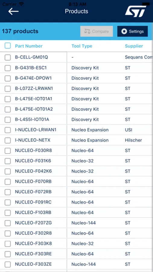 STM32 Finder features easy-to-use selection tools that provide you direct access to documentation, and a connection to STM32 communities. You will find the microcontroller, microprocessor or development board part number that best fits your application thanks to an easy search with multiple criteria including core type, CPU frequency, memory, price, package, I/Os, temperature grade, and peripherals such as control, timers, analog, connectivity, multimedia and security. From the application, you will also have the possibility to directly buy devices or development boards on-line.