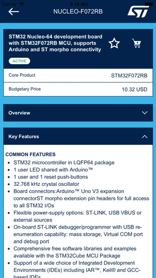 - Instant access to microcontrollers and boards technical documentation, key features, and functional block diagrams