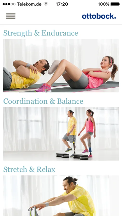 The Fitness for Amputees App includes a series of easy-to-understand exercises for leg and arm amputees developed by experienced Ottobock physiotherapists. Up to 6 months after a prosthetic fitting, the app can be your regular companion and provide you with the training you need in this special situation. All you need for the exercises is a mat, a towel and a ball. Once you have installed the app on your device, you can also use it offline.