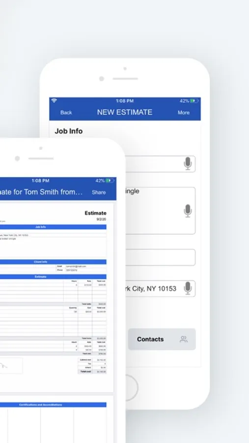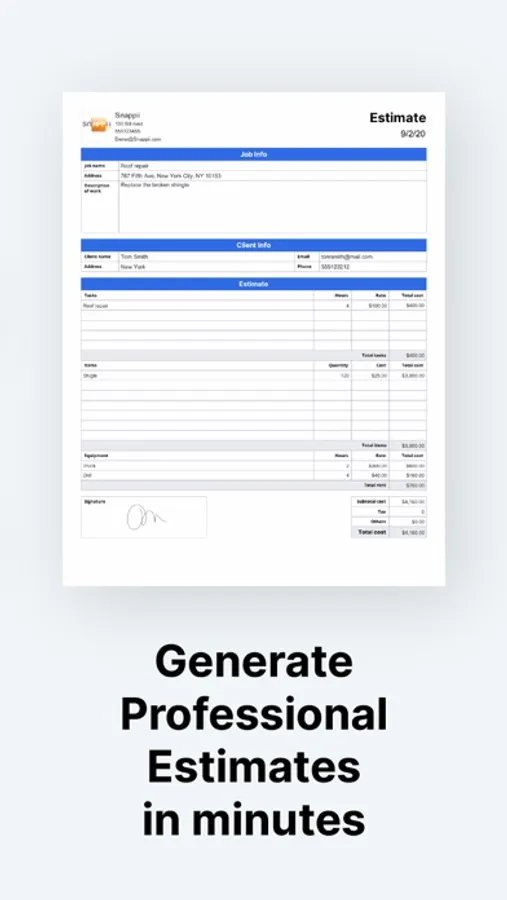 The Job Estimates & Invoices mobile app is designed to provide professional Estimates, Work Orders and Invoices in minutes.