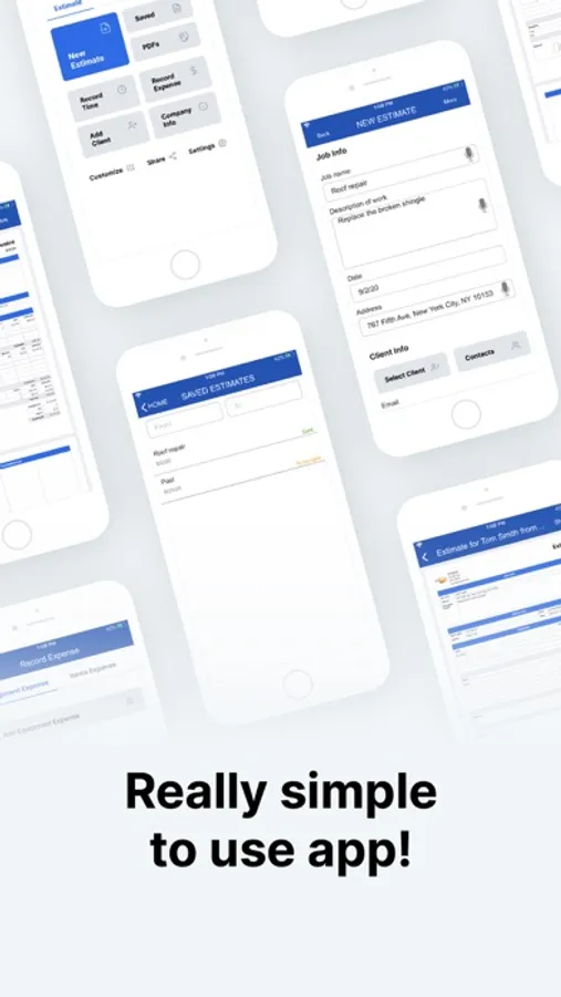 The app is very easy to use. You can import clients from the address book or Excel file. No need to type! Use speech to text feature. Preview the Estimate, Work order or Invoice prior to sending it to the client.
