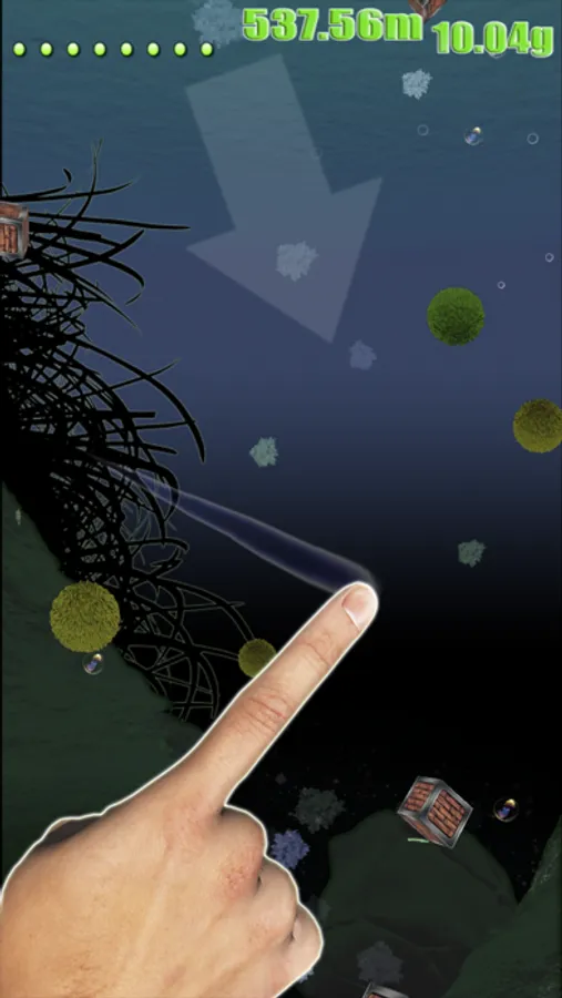 Let it go and it will go into a free fall, so players have to help marimo avoid debris - bump into anything and it's game over.