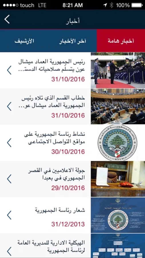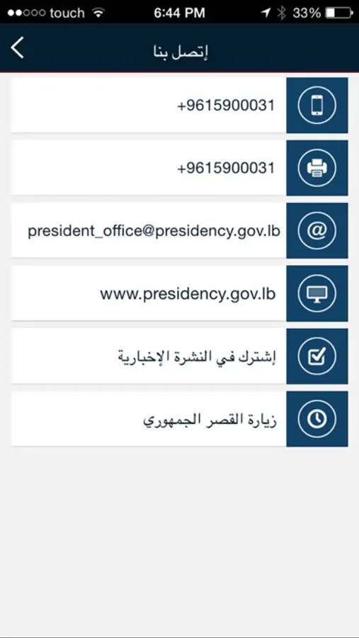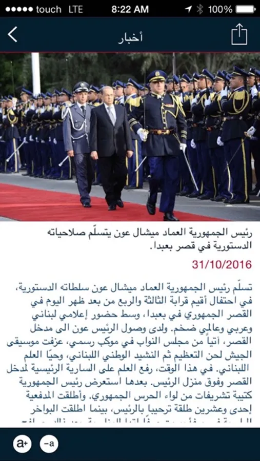 اطلقت المديرية العامة لرئاسة الجمهورية برنامجا تطبيقيا مجانيا للهواتف الذكية يتضمن متابعة تفصيلية ودورية لنشاطات فخامة رئيس الجمهورية واللبنانية الاولى عبر تلقي رسائل مقتضبة ، اضافة الى معلومات عن رئاسة الجمهورية والرؤساء السابقين والدستور اللبناني وعن الزيارات الشهرية للقصر الجمهوري ضمن اطار الابواب المفتوحة، اضافة الى معرض الصور والفيديو والبث المباشر، كما يمكن مراسلة مكتب الرئيس والاشتراك في النشرة الاخبارية