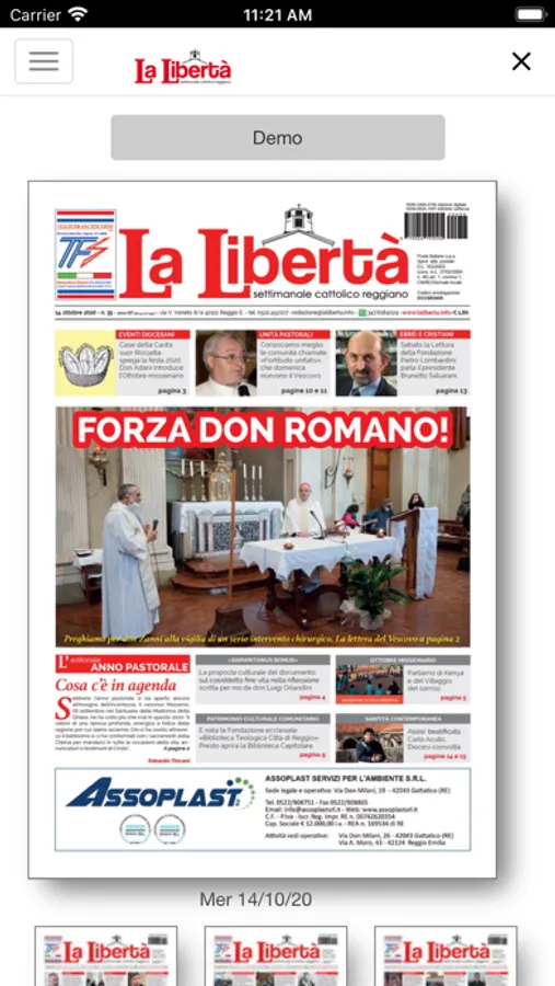 App del giornale La Libertà, periodico di informazione e opinione della Chiesa di Reggio Emilia-Guastalla. Permette di visualizzare gli articoli, le foto, i video e altri contenuti multimediali, con la possibilità di condividerli sui social network.
