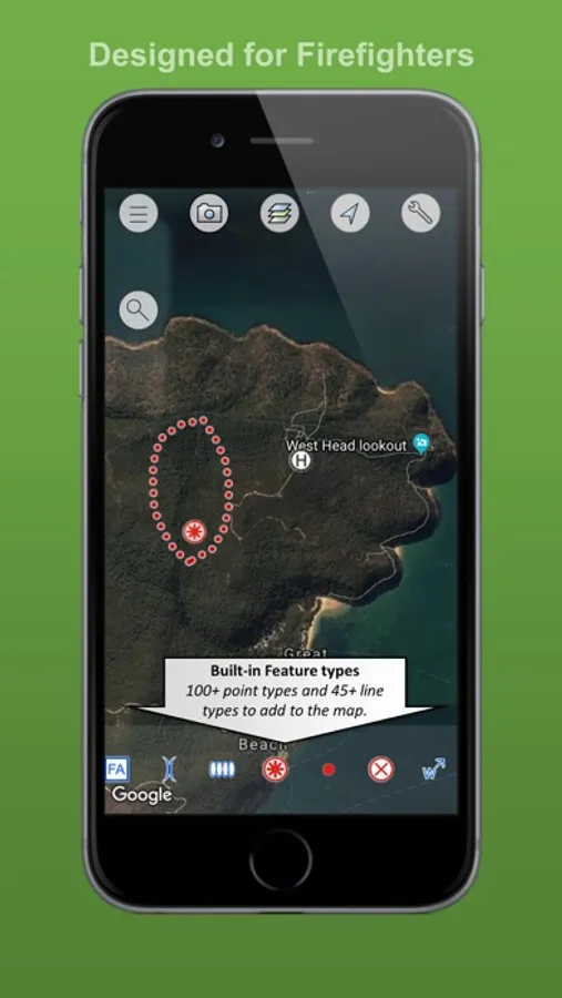 Hydrant, Water Point, Fire Origin, Spot Fire, Aerial Ignition, Hotspot, Defendable/Not Defendable Asset, Threatened Asset, Indigenous Site, Historic Site, Hazmat,Flora/Fauna, Airbase, Helibase, Helibase,Smoker Standing/Down,Tree Down, Medical, Mobile Weather Station, Portable Communications, Access Point, Control Point, Road Closure, RAFT, Drop Zone, Assembly area, Staging area, Base camp, Control Centre, Divisonal/Sector Command, Evacuation Area/Center, Escape Route, Refuge area, Property damage and more....