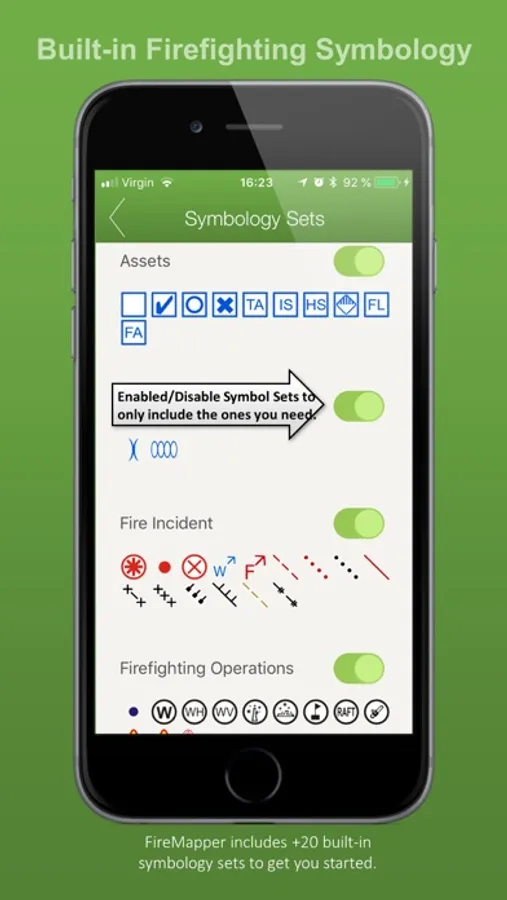 This version contains bush firefighting symbols that are commonly used in Australia, USA & Canada with support for: