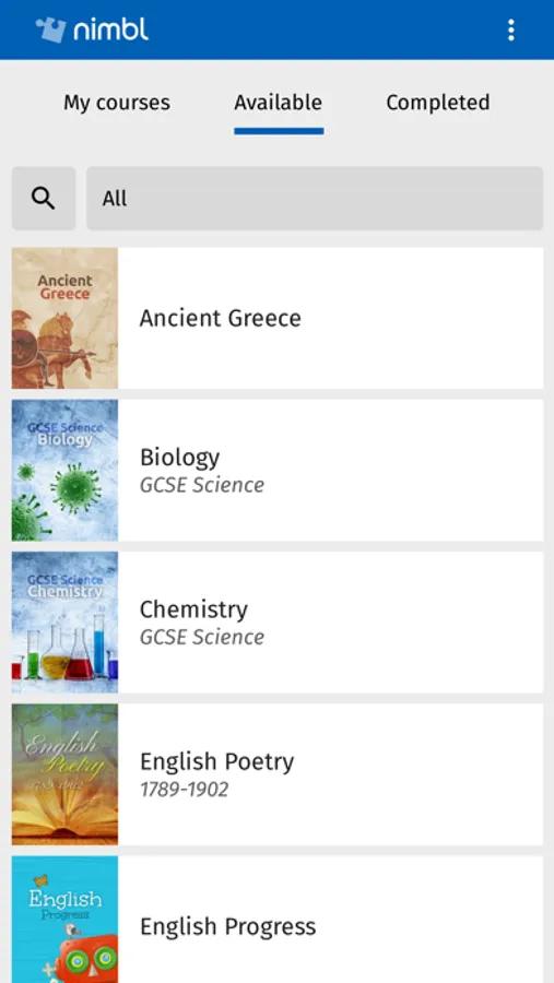 This is the nimbl library application. You should only download this if you have login details from your school (or another institution). Your nimbl library app already contains the resources that your teacher or tutor has given to you.