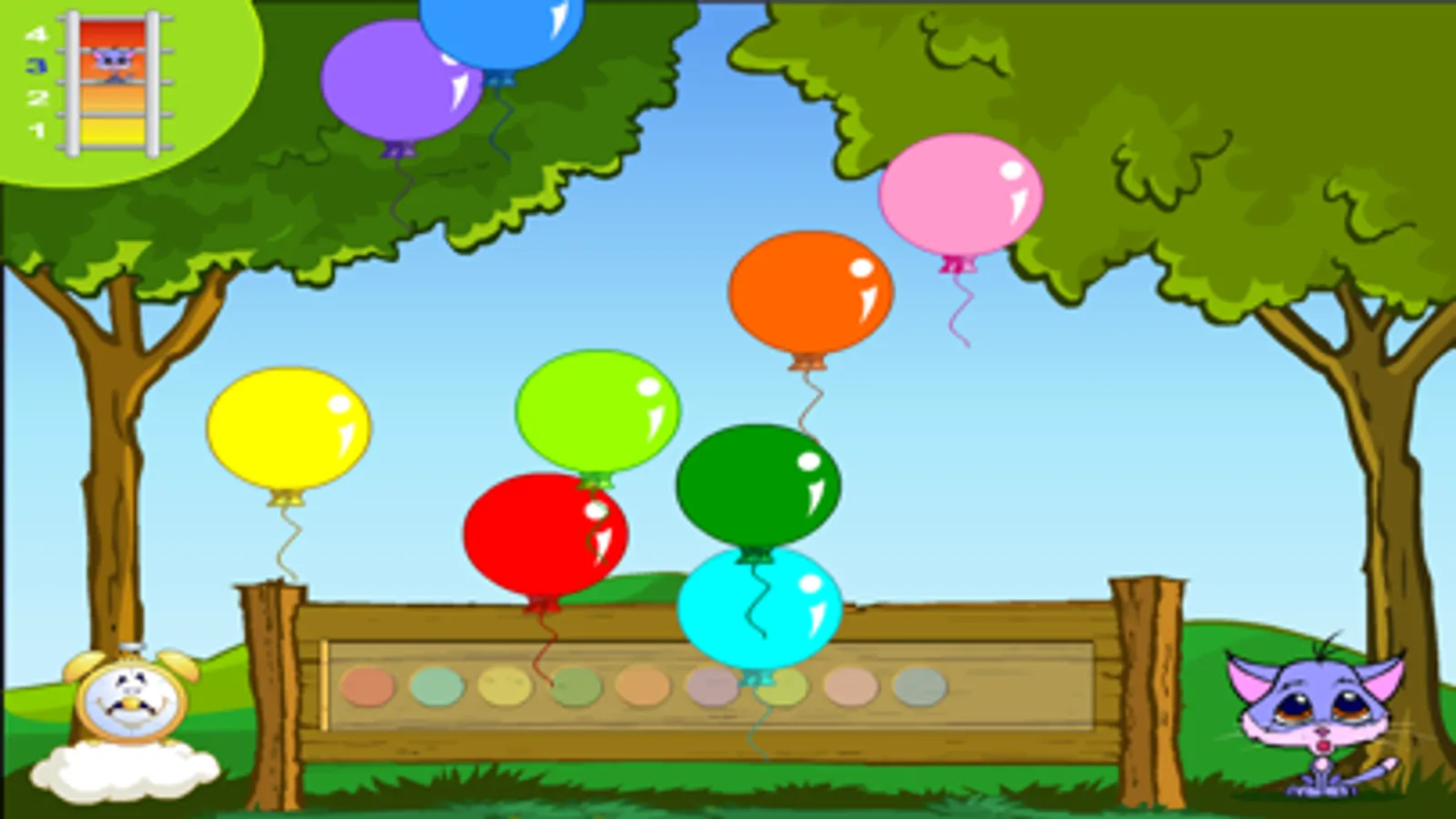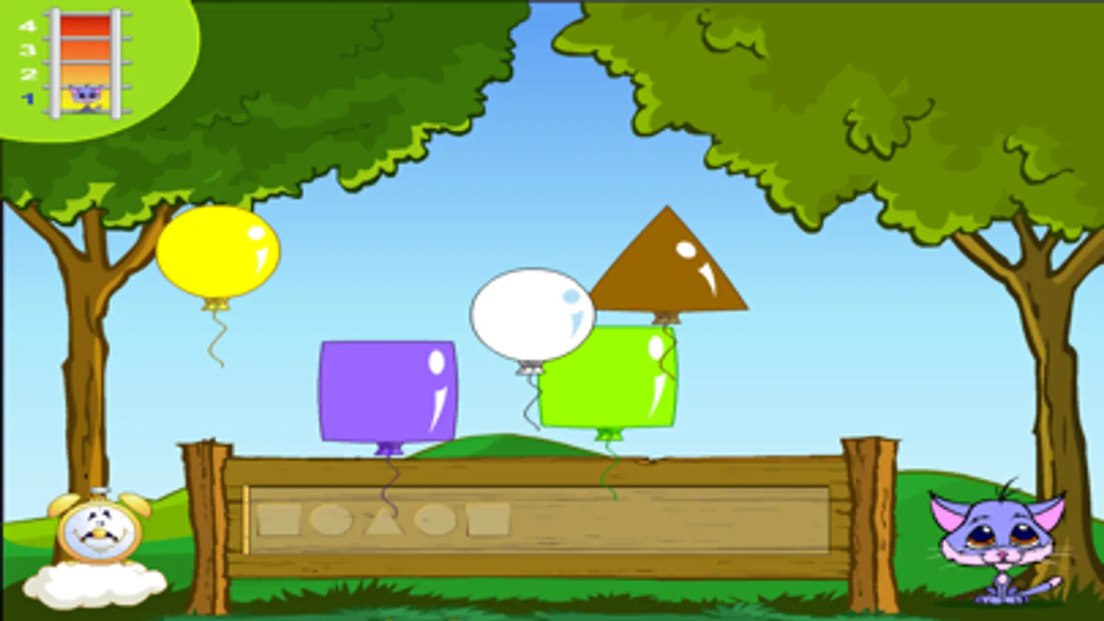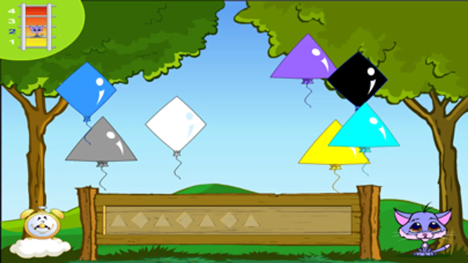 - au niveau 1, il faut reconstituer une suite de 5 dessins en faisant éclater, dans le bon ordre, les ballons de différentes formes.