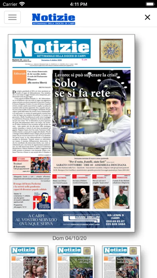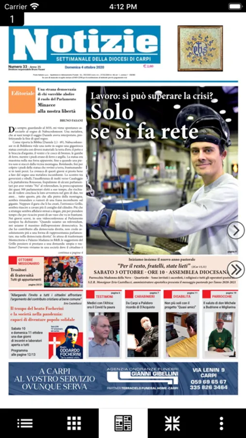 Questa app permette di sfogliare, in modo semplice e piacevole, Notizie, il settimanale della Diocesi di Carpi.