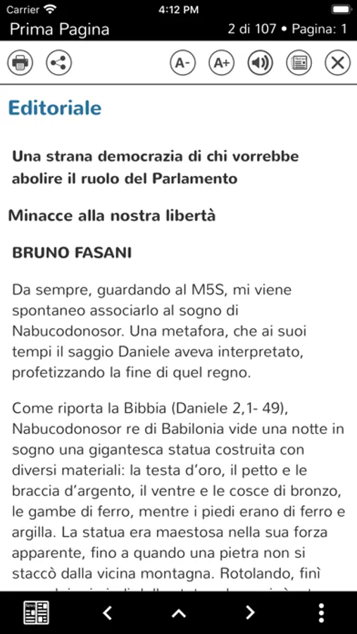 - possibilità di leggere gli articoli in due modalità, grafica e testuale, basta fare un click per ingrandire la pagina;