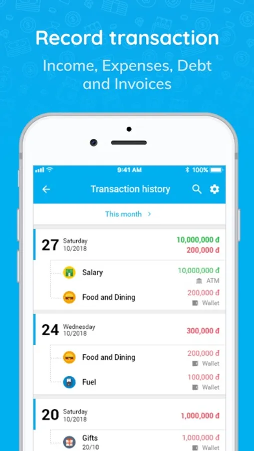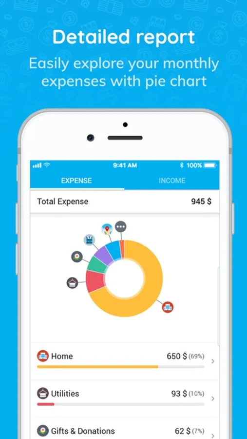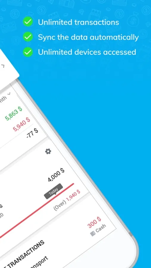 - All spending records are synchronized automatically between devices, ensuring that data is always stored safely and securely.