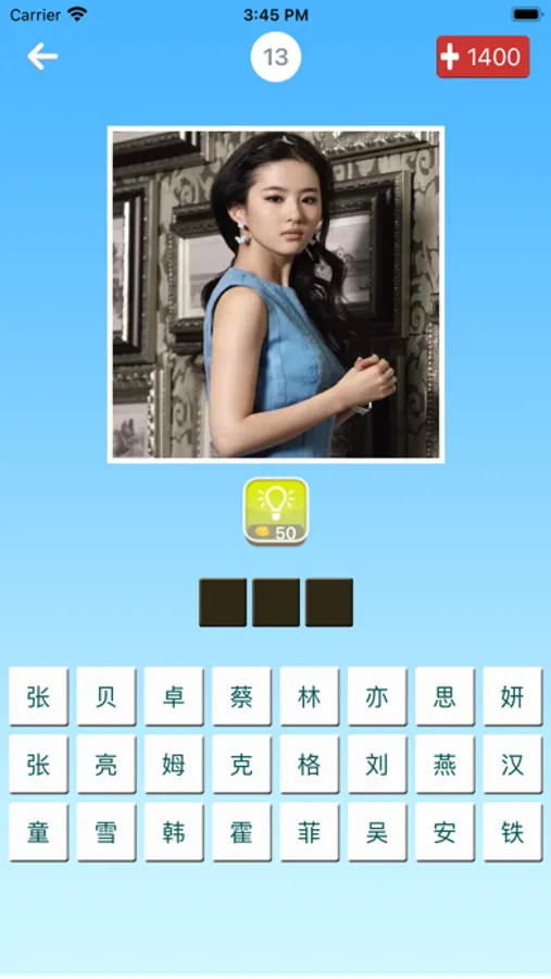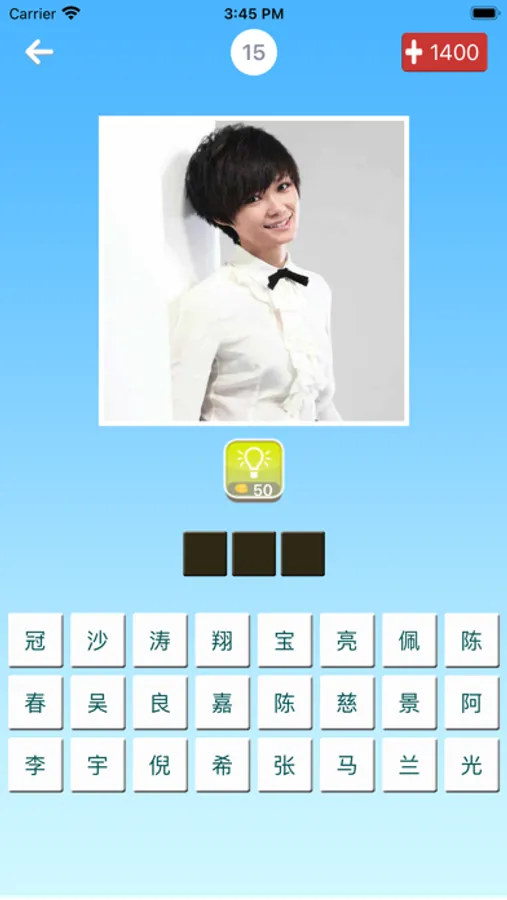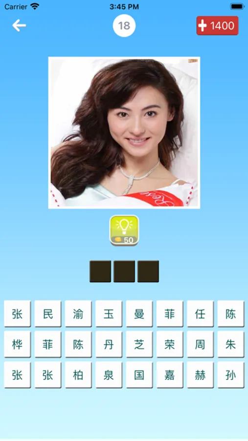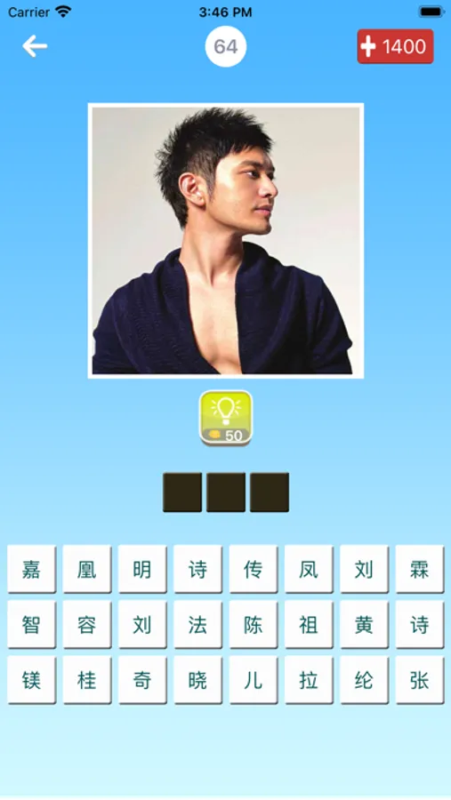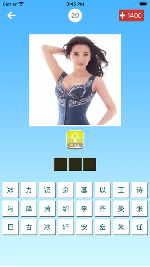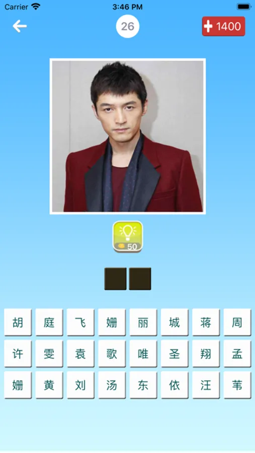 看图猜明星是一款休闲娱乐的小游戏,从给出的图片猜出明星的名字,正确之后才能进入下一关。
