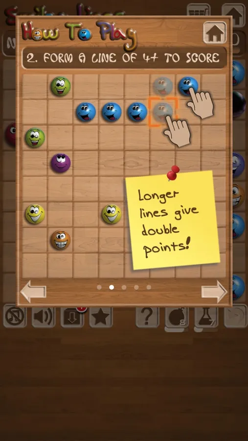 • Casual game with no time limit. Smiley Lines has no time limit which means you can take your sweet time connecting emoji on your board and think of the best strategy to achieve higher score.