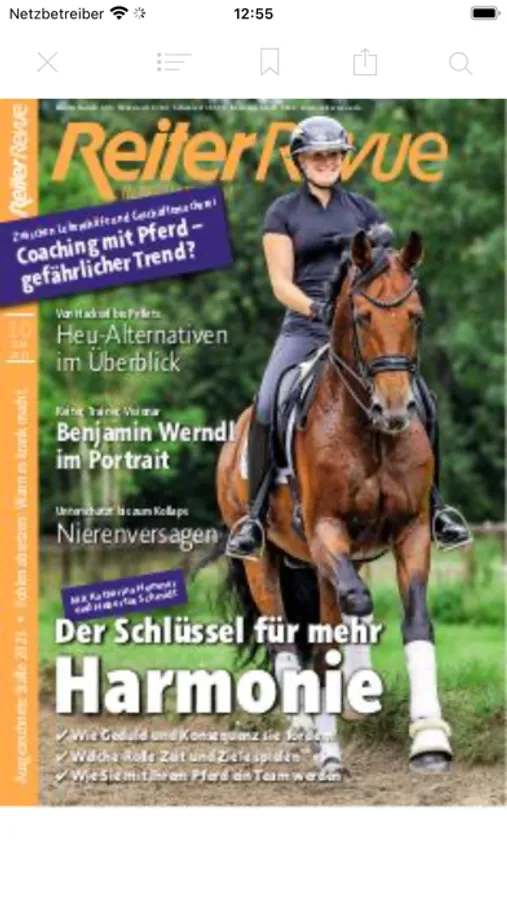Die Reiter Revue International als ePaper ist DAS moderne Fachmagazin für alle Pferdesportbegeisterte. Sie spricht Reiterinnen und Reiter, sowie Pferdebesitzer und Züchter mit einem hohen Interesse an den klassischen, pferdegerechten Ausbildungszielen sowie einer optimalen Haltung an. Die Reiter Revue International zeichnet sich besonders durch die stets aktuelle und kompetente Berichterstattung in Reitsport, Pferdehaltung und Zucht aus. Die Mitglieder der Redaktion sind gefragte Experten in Jurys, auf Veranstaltungen und immer am Puls der Pferdeszene. Wer über aktuelle Themen, wichtige Fragestellungen sowie Trends und Neuheiten informiert sein will, liest das ePaper der Reiter Revue International.