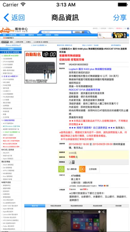 2.可以點擊小圖秀出商品圖片及資訊。