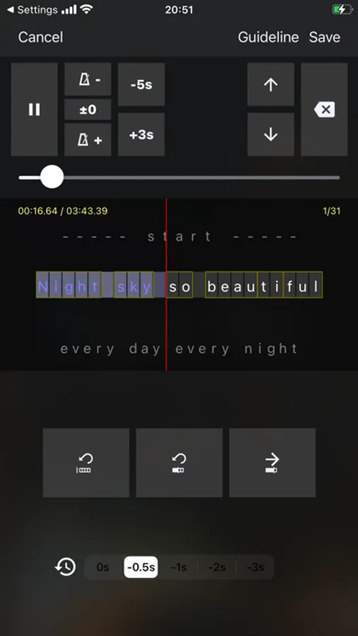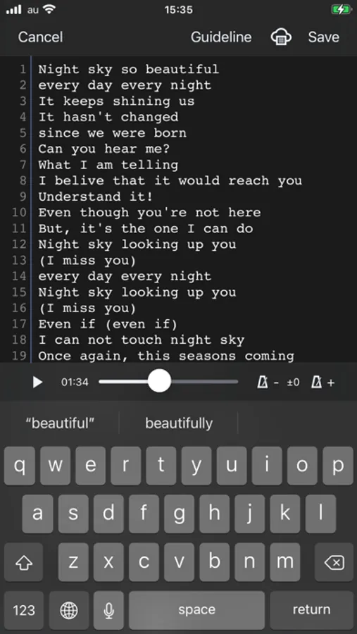 Full of functions will help you to make lyrics easily, such as rewinding, speed control, a skip of +-,preview,and more.