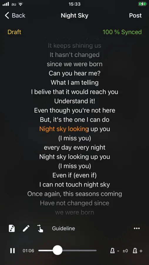 Just trace the lyrics or tap the button with listening to your favorite music on your smartphone, you can make synchronized lyrics with fun.
