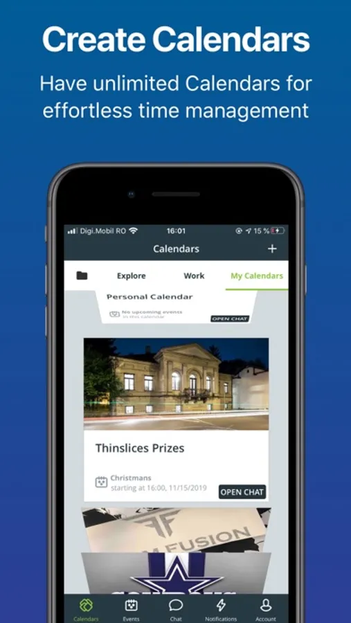Conferences: Low-fee service for registration and ticketing. Communicate with attendees through chat and notifications integrated within your schedule.