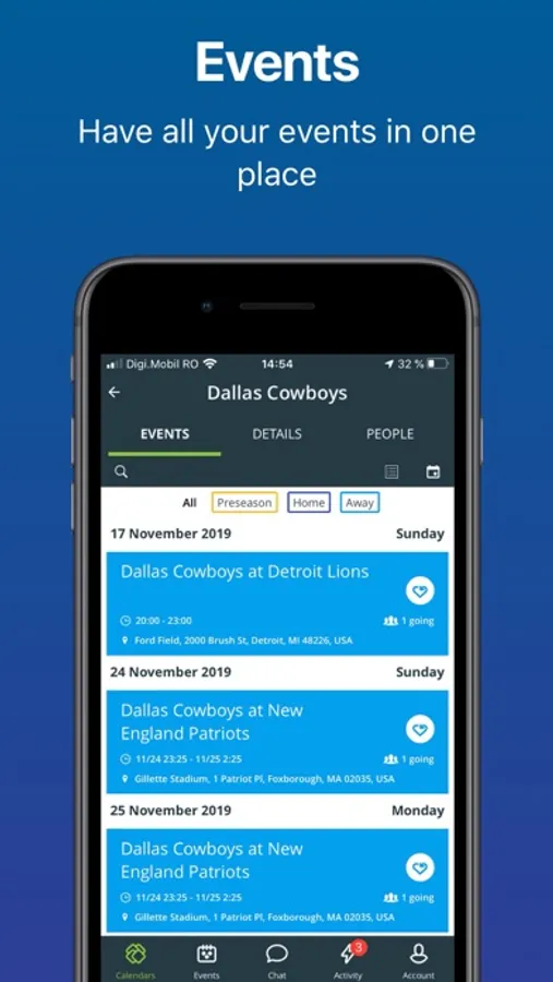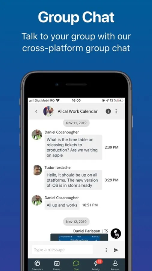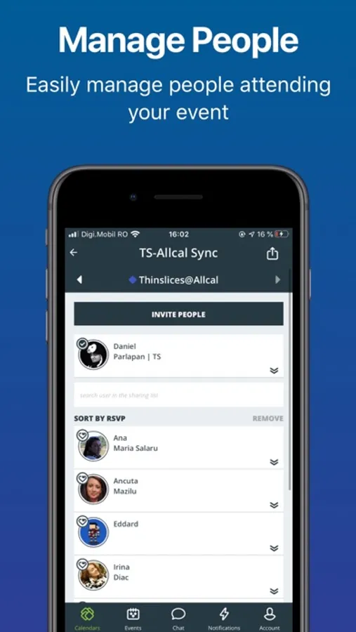 Create a calendar, add events and share with a group. Keep track of invite responses. Built-in chat allows you to collaborate within the calendar.