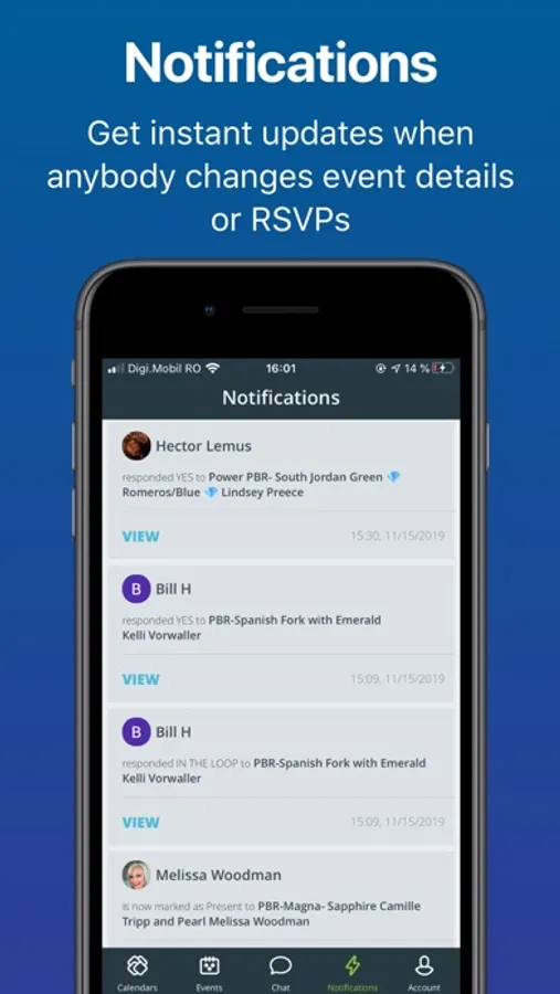 Easily live stream an event from your phone and all participants of the Event are notified and can view the live stream. Up to 4 streams can be created and seen at the same time for different perspectives of the Event. All functions are currently Free. Live streams can be created and viewed from all our platforms including our web Monitors.