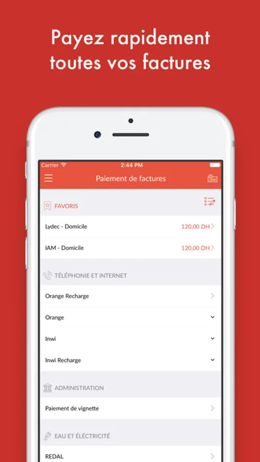 - Effectuer et suivre vos virements vers les comptes Attijariwafa bank et confrères (Normaux, différés ou permanents),