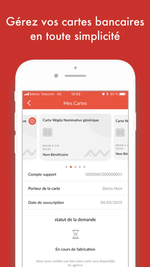 - Effectuer et suivre vos recharges de cartes prépayées Wajda en ajoutant vos cartes bénéficiaires en ligne,