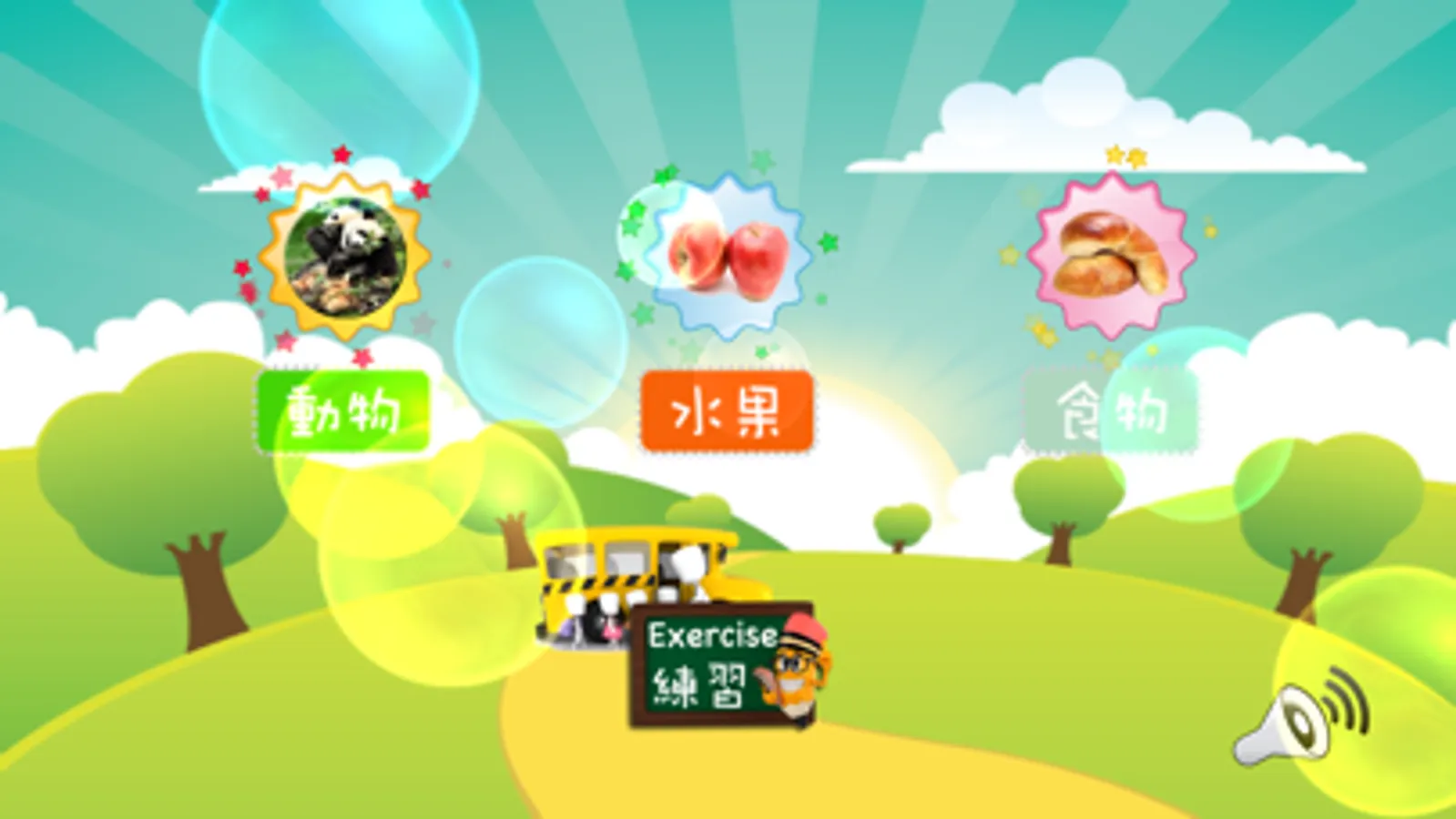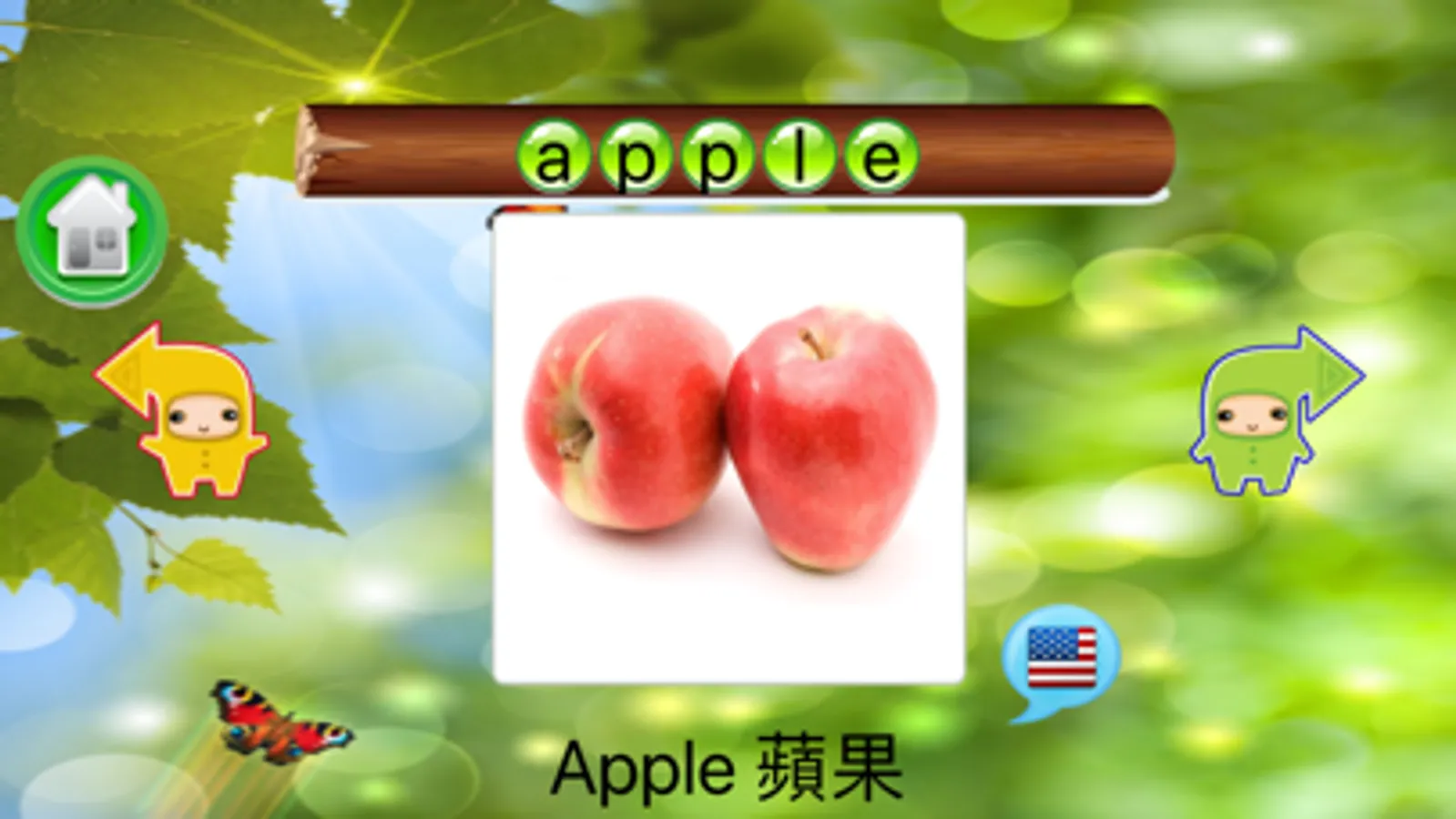 -Vocabulary has words from different categories like: animals, fruits and vegetables.